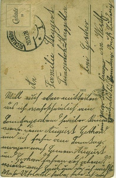 In dem Testament von Gertrud Schulte gen, Steggert, erhält man Auskunft über die Berufe der Kinder des Hofes im Jahre 1943 und deren Wohnorte. Einige der Kinder verdienten ihren Lebensunterhalt im nahegelegenen Ruhrgebiet. Hier eine Karte, die 1928 in die Heimat geschickt wurde. Bilder Ludwig Karte