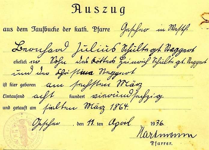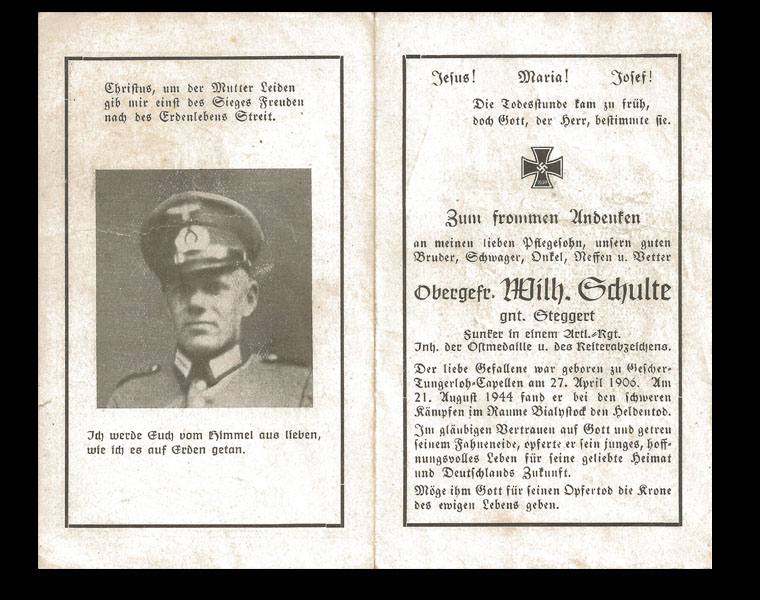 Schauen Sie weiter rechts: dort finden Sie weitere Informationen wie die Auszüge aus dem Stammbaum und die Totenzettel der Familie Schulte gen. Steggert.